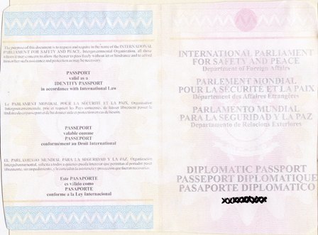 3- DIPLOMATIC PASSPORT FROM THE INTERNATIONAL PARLIAMENT FOR SAFETY AND PEACE